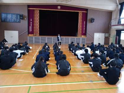今朝は2年生の学年集会がありました。授業の受け方、職員室の入室や保健室の利用についての話がありました。