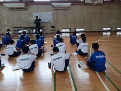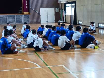 東三国中学校の体育の授業は1年生と2年生の縦割りで授業をしています。今日は授業での持ち物の確認をしていました。先生の指示をしっかり聞いて確認をしていました。