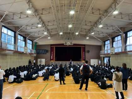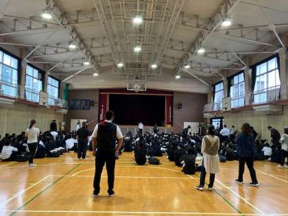 6時間目に講堂で部活動編成を生徒会の司会で行いました。