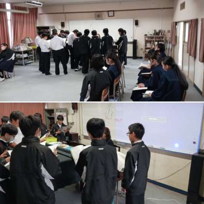 2年生の音楽の授業の様子です。「翼をください」を学習していました。男女別に歌い方の細かいアドバイスを受けています。