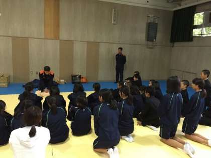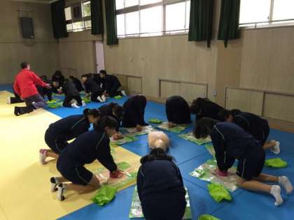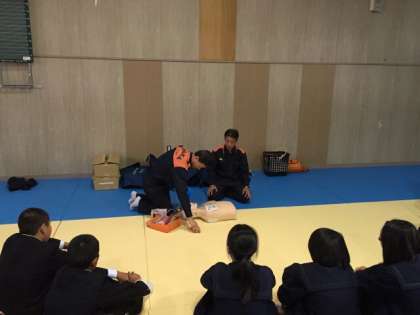 防災訓練の前に、救急法の訓練を消防署の方から指導を受