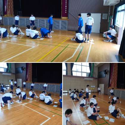 2年生の体育の授業の様子です。反復横とびの記録をとっていました。1年前から記録は更新されていますか?