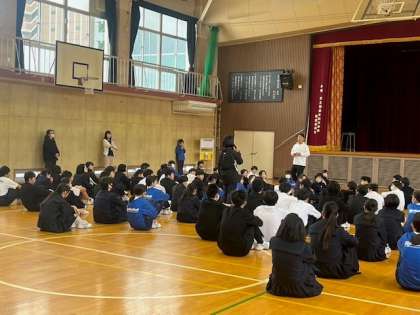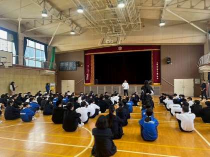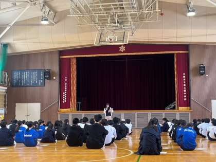 今日は水曜日で、定例の1年生の学年集会でした。中学生になって約1ヶ月が過ぎようとしています。みんなで静かに黙想し、この1ヶ月の間に自分が成長できたか振り返ってみました。その後、それぞれの成長した部分について発表もしました。また、初めてのテストについての説明も受けました。1ヶ月の頑張りの成果を、生活面でも学習面でも存分に発揮してほしいです。