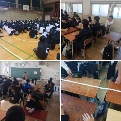 終了後、各教室へ戻り、振り返りといじめアンケートを行いました。生徒主体で行った「いじめ・いのちを考える日」わかっているとは思いますが、これを機に「いじめ」「いのち」についてあらためて考えてもらえたら、と思います。ご家庭でもお話してください。