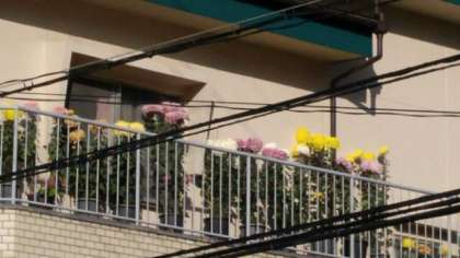3階屋上のベランダ・・・いちめんに「菊」