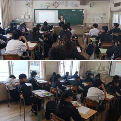 2年生の英語の授業の様子です。「〜と思います。」の英語表現について学習しています