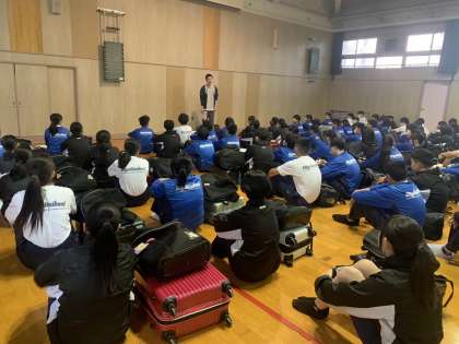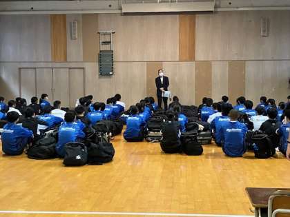 今日から62期生3年生の修学旅行が始まります。6時半の集合、眠い目をこすりながらの生徒も、テンション上がった生徒も集合しました。校長先生の話の後、修学旅行委員会が司会で出発式が行われました。さあ、いよいよ出発です。学ぶところはしっかり学んで、楽しむところはたくさん楽しんできてください。