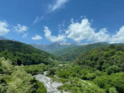 子どもたちはアクティビティをする場所へ移動しています。とてもきれいな景色の中で行います。大阪では見ることができない、とても美しい風景です。