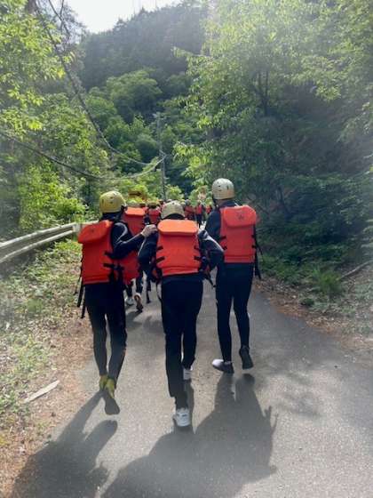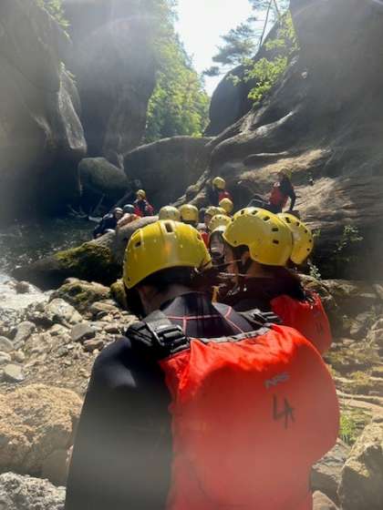 アクティビティ、キャニオニングです。キャニオニングとは、渓谷(canyon)をする(ing)。文字通り、渓谷を満喫するフランス発祥のアウトドアスポーツです。えっ?こんなところ行くの?気を付けて、いってらっしゃい。