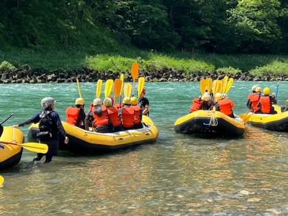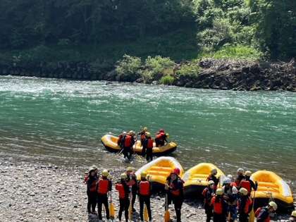 あっという間にゴールに到着しました。みんなでゴムボートを片付けていきます。みんなで、きれいな自然の中での体験は思い出に残るでしょうね。この後は、お昼ご飯です。もう少し、みんなで協力しましょう。