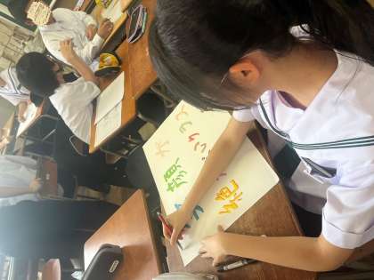 一年生は、テストの結果を受けて、担任の先生と一人一人面談をしました。次の期末テストに向けて、日々の学習を見直す良い機会として欲しいです。教室では学級目標の制作中です。思いのこもった学級目標ができそうです。