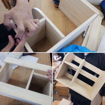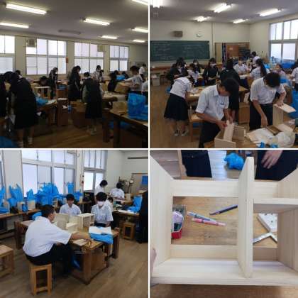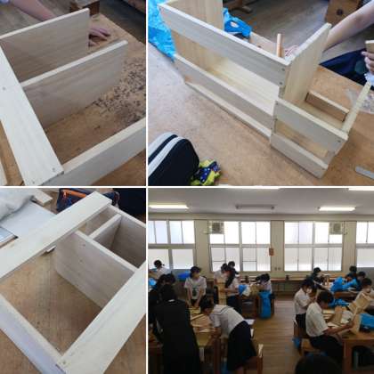 今日の2年生の技術の授業です。材料加工の技術で学習した作品作りの修正作業を行いました。