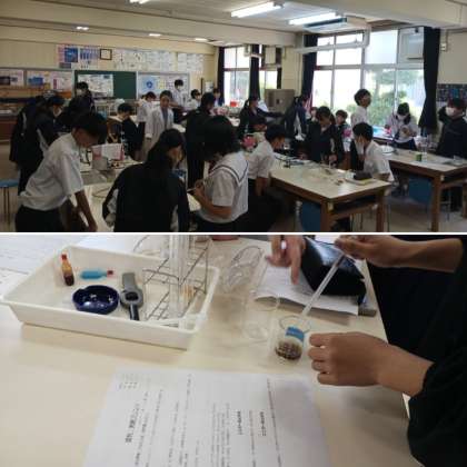 2年生の理科の授業の様子です。今日は「実験」をしています。消化酵素の分解についての学習です。
