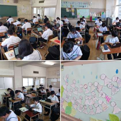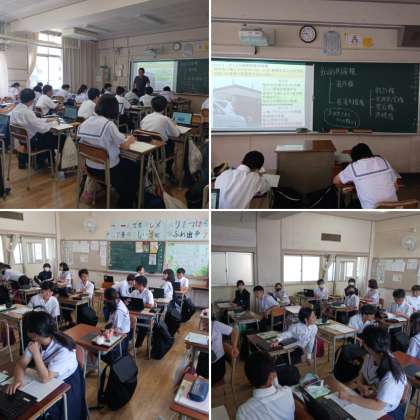 1年生の技術の授業の様子です。今日は情報の技術について学習しています。情報モラルや知的財産についての学習をしました。引き続き来週は本日の授業の細かい点をグループで調べ学習をして発表をします。