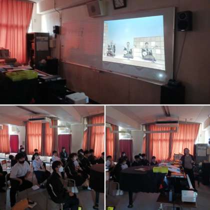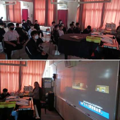 2年生の音楽の授業の様子です。今日は文楽についての学習です。映像を鑑賞して理解を深めています。