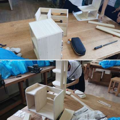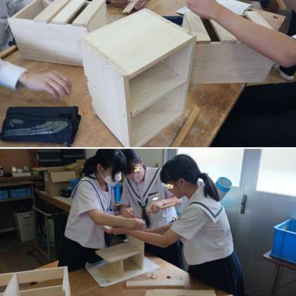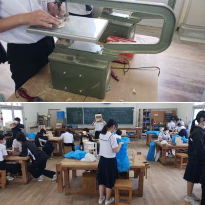 2年生の技術の授業の様子です。材料加工実習を行っています。ほとんどの生徒が修正作業に取りかかっています。作品の完成が楽しみですね。