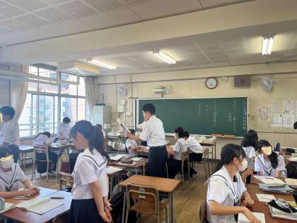 一年生の国語では「空中ブランコ乗りのキキ」を学んでいます。主人公が命をかけて四回宙返りをするのですが…本当にその選択は正しかったのか?各クラス熱い議論が行われています。