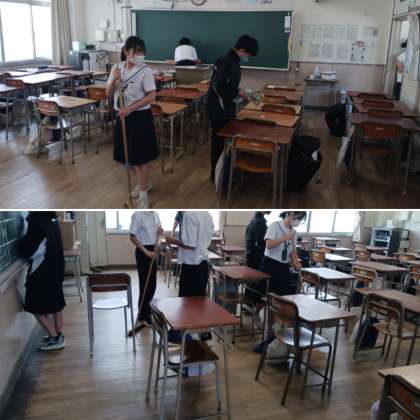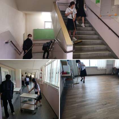 自分たちが使った場所を丁寧に掃除をして一日が終了です。明日も頑張っていきましょう。