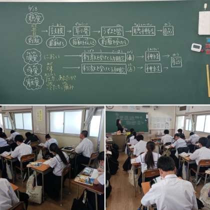 2年生の理科の授業の様子です。今日は感覚器官の働きについて学習しています。