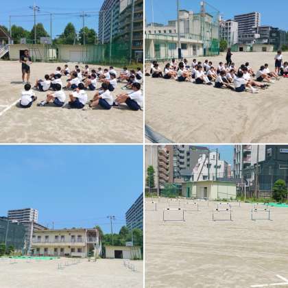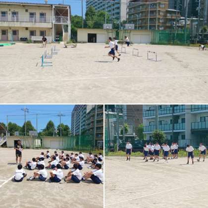 今日の体育の授業の様子です。男子はハードル走からタイム測定をしました。前から練習を重ねていた走り方、飛ぶタイミングを確認しながらの測定です。コツが掴めていたのでしょうか、スムーズに走ることができていました。女子は走り方の細かいコツについて先生より説明がありました。前よりもいいタイムが出ると良いですね。