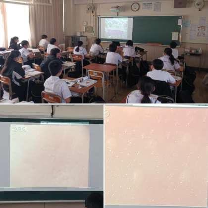 2年生の理科の授業の様子です。今日は「感覚器官の働き」について学習しています。味覚を感じる理由について動画視聴を行い、理解を深めています。味覚以外にも、なぜ目は見えるのか、なぜ暑さを感じるのか等も考えていきました。自分の身体のことを学習することも大切ですね。