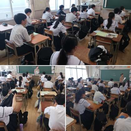 2年生の朝学活の様子です。7月の目標を考えています。テストも終わり、1学期ももうすぐ終わります。夏休みが近づいています。今月も新たな気持ちで頑張りましょう。