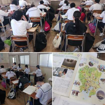 2年生の社会の授業の様子です。地理の学習をしています。今日は関東地方について学んでいます。関東地方は何個県が存在しますかとの先生の質問。近畿地方ならすぐ出てくるでしょうが、関東地方、すぐわかりましたか?