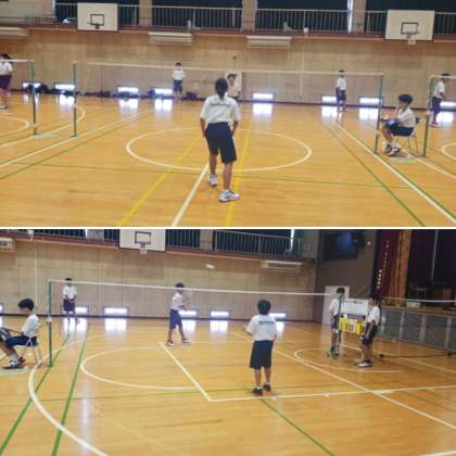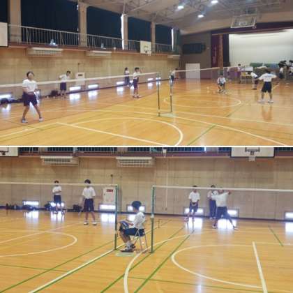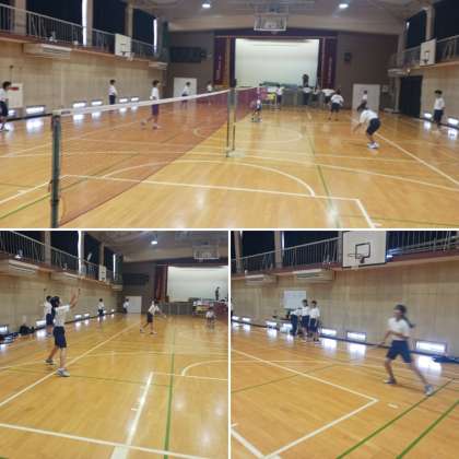 8月になりました。夏休みもクラブ活動で頑張っています。バドミントン部の様子です。ゲーム形式の練習を行っていました。激しいスマッシュの打ち合いをしていました。
