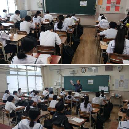 今日は2年生の学年登校日です。あいにくの雨でしたが元気に登校している生徒の皆さんの顔を見ることができて嬉しかったです。登校してから、教室で担任の先生からの話がありました。その後、夏休みの課題の各教科の進捗状況の確認が行われました。また2学期の取り組みのアナウンスやその準備も行いました。来週から2学期が始まります。学校生活がスムーズにスタートできるよう頑張りましょう。
