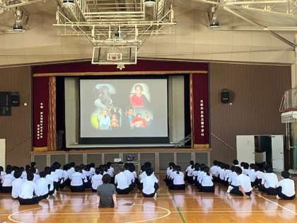 今日は3年生の学年登校日でした。1時間目は教室で健康面や宿題のチェック。2時間目は講堂にて平和学習を行いました。フリージャーナリストの西谷文和さんの映像を見て、現在も紛争が行われている状況を知りました。学年主任の先生から「平和を知ること、当たり前の生活が当たり前に過ごせることを考えることが大切」とお話がありました。今日の学習から考えてみることが大切ですね。