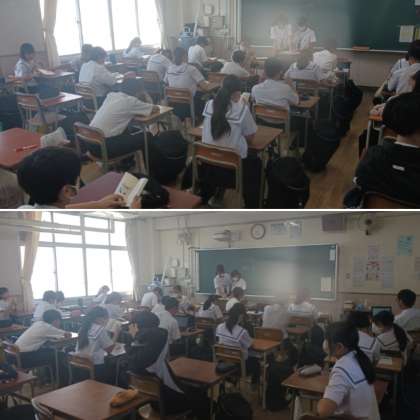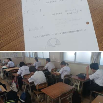 2年生は学活の後、朝学習を行っています。今日は数学の問題に取り組んでいました。計算の仕方について再確認しています。教科係の生徒が黒板に答えを書いて、答え合わせをしました。全問正解していたのでしょうか・・・。