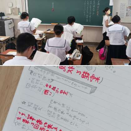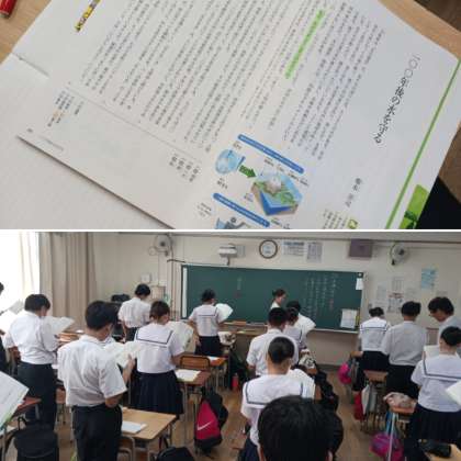 2年生の国語の授業の様子です。「100年後の水を守る」の単元を学習しています。今日は音読が行われているところにお邪魔しました。しっかり姿勢をただして、はっきりとした口調で教科書を読んでいました。