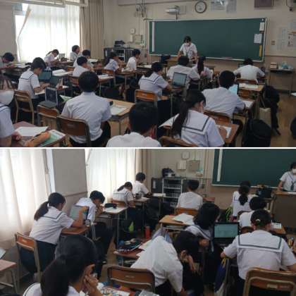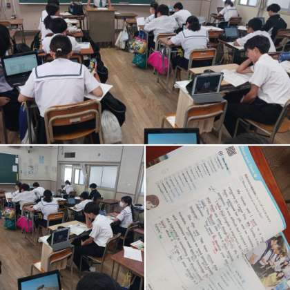 2年生英語の授業はREAD & THINKの単元を学習しています。何人かの生徒が与えられたテーマでスピーチをしています。