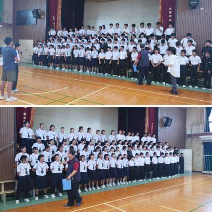 本日の2年生学年集会では文化発表会の合唱練習を行いました。日々の音楽の授業や学年の取り組みを活かしたものになっています。まだまだ練習が必要です。今日は並び方を行いました。イメージ覚えましたか?
