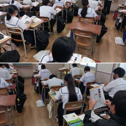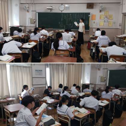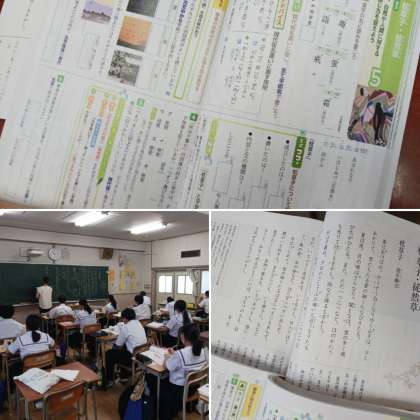2年生の国語の授業の様子です。「枕草子・徒然草」について学習しています。古典で見られる文法事項といっしょに、歴史的仮名遣い等を確認して文章の内容を認識しようとしています。
