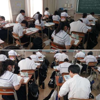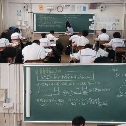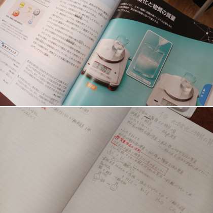 2年生の理科の授業は化学の授業です。化学変化の前後での物質の質量について先生から説明がありました。質量保存の法則について学習しました。