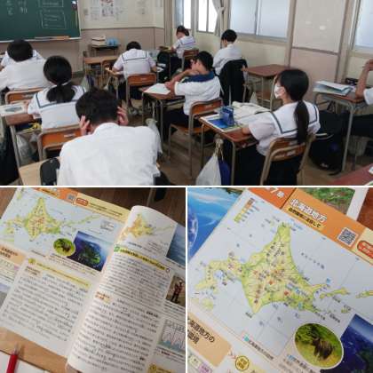 2年生社会の授業は北海道地方の学習です。北海道の農地改革を勉強しています。