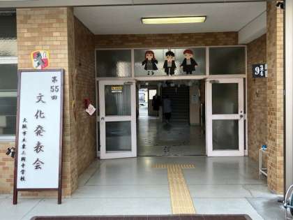 9月27日(金)、第55回文化発表会が開催されました。生徒が授業や部活動、学年で取り組んできた成果を発表しました。文化発表実行委員、生徒会、美術部の皆さんで玄関を飾りつけしました。「ハリーポッター」の世界。プラットホーム93/4から出発します。