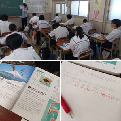 2年生の理科の授業の様子です。新しい単元の学習に入りました。地球を取り巻く大気の様子を学習しています。