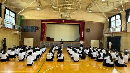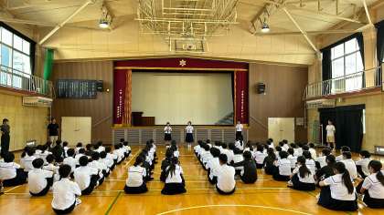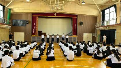 前期の各委員会活動が終わり、これから後期の各委員会活動にバトンタッチされます。今日は前期の各委員から振り返りを伝えてもらいました。また、文化発表会での学年発表「群読」で頑張ってくれた代表生徒から感想を伝えてもらいました。それを受け、学年主任の先生から労いの話がありました。いろんな場面で活躍し、持っていた力を発揮してくれました。これからの6か月、そして2年生、3年生とますますの活躍を期待しています。