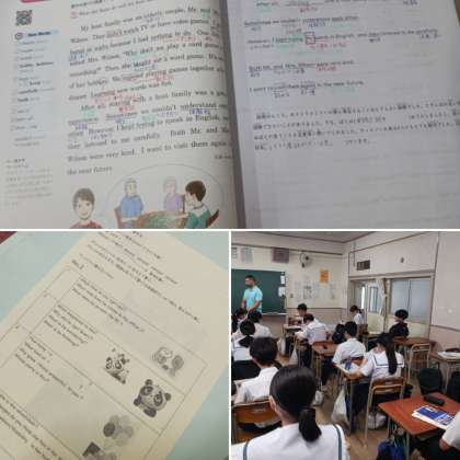 2年生の英語の授業の様子です。今日の授業では「Read and think」について学習しています。今日はC-NETが来られています。積極的に英語を話すことができましたか。授業だけでなく、休み時間などでも会話してみましょう。
