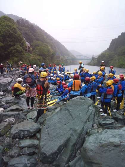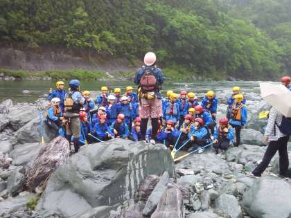壮大な渓谷の中、生徒を乗せたボートはアクティブに進んでいきます。