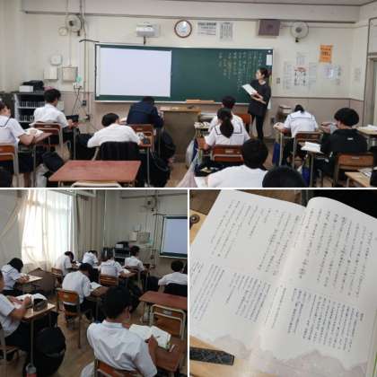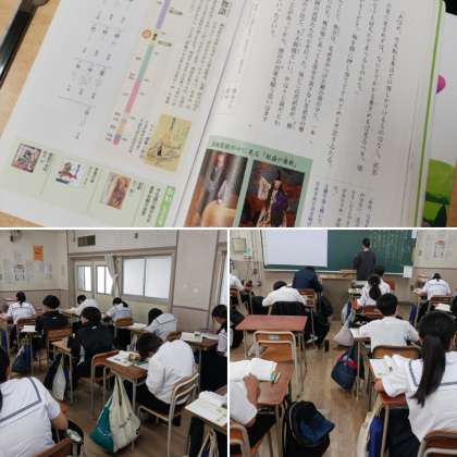 2年生の国語の授業は、引き続き「平家物語」の学習です。前の授業では古典特有の読み方や意味を確認しましたが、今日の授業では物語の登場人物がどのような心情だったのかを読み取っています。