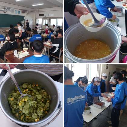 今日は体育大会予行が延期になり木曜日の時間割での学校生活です。午前中の学習を集中して取り組むことができました。しっかり食べて、午後からの活動もがんばりましょう。