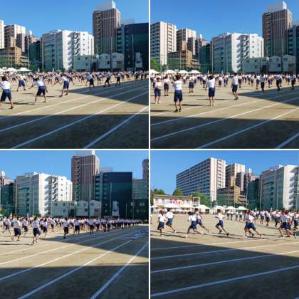 プログラム1番、合同体操(ラジオ体操)の様子です。日々の学年練習や体育の授業でも練習をしました。指先までしっかりきれいにできています。