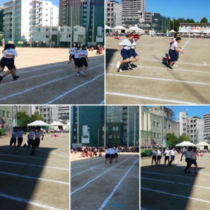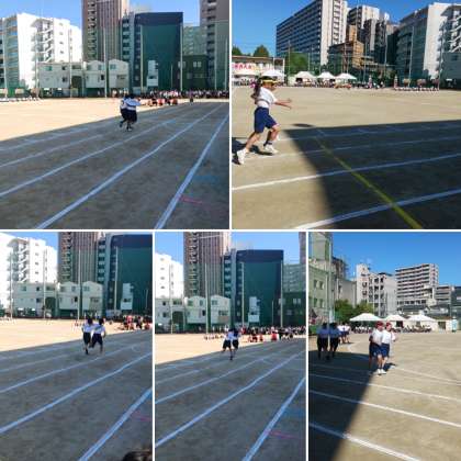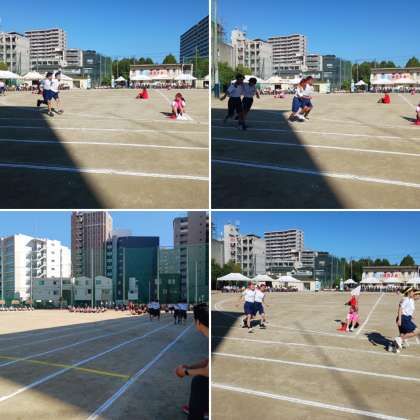 2年生、3年生の二人三脚の様子です。二人で協力するこの競技ですがまるで一人で走っているかのような一体感です。