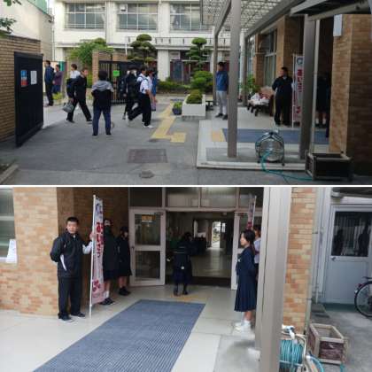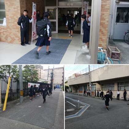 今日の朝の登校風景です。生徒会、風紀委員の元気なあいさつが響いていました。毎日、ありがとうございます。1日も頑張って学習しましょう。
