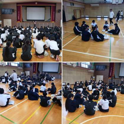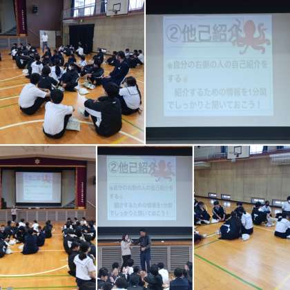 午後からの総合の授業では、11月14日(木)に行われる「1、2年生校外学習」に向けて、合同で取り組みが行われました。前回決めた校外学習の班に分かれ、班長を決めたり他人を紹介する「他己紹介」を行いました。初めて顔を合わせた人もいます。知らないメンバーとも仲良く行動できるように、今日は良好な関係を築いていきましょう。知っている人がいる人は、もっと仲良くなれるようにしましょう。