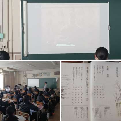 2年生の国語の授業では「漢詩の世界」について学習しています。動画を見て漢詩についての知識を深めています。