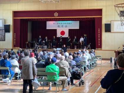 東三国中学校からは、第1部にて吹奏楽部がお祝いの演奏を行いました。ご出席されていた方々には喜んでいただき、拍手やアンコールまでいただきました。また、第1部最後では東三国小学校5年生の皆さんが、ご出席の皆さんへお世話になっているお礼のお手紙を読み、リコーダーで「ふるさと」を演奏しました。本日は参加させていただき、ありがとうございました。